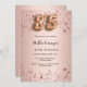Eine moderne, stilvolle und glamouröse Einladung zu einer 85. Geburtstagsfeier. Eine Rose mit goldenem Hintergrund mit Sternen. Der Name wird mit einem handgeschriebenen Stilskript geschrieben. Personalisieren Sie Ihre Party-Daten und fügen Sie sie hinzu. Nummer 85 wird mit einem Schriftart im Ballonstil geschrieben, Skript.