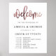 Dies ist ein wunderschönes Portrait Poster Willkommensorder von Veranstaltungen Hochzeitszeichen mit Skripttext in Schwarz und Rose Gold Textur.