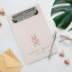 Die elegante personalisierte Zwischenablage für Ihr Salon- oder Friseurgeschäft umfasst zwei Textzeilen in klassisch grauem Schriftsatz auf einem hellrot-rosa Hintergrund, der mit einer Blume-geschmückten Schere in Imitaten Rose Goldfolie verziert ist. Design wiederholt sich auf der Rückseite. Bitte beachten Sie, dass diese Zwischenablage eine Mini-Größe hat; Vollversion auch in unserer Rose Gold Floral Scissors Salon Kollektion erhältlich.