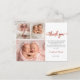 Moderne elegante Rose Gold Script Girl Twins Neugeborene Babies 3 Foto Collage Vielen Dank Postcard. Mit einem wunderschönen "Dankeschön"-Text in einer kursiven handgeschriebenen Kalligrafie Swash Schwanz Schriftart-Skript in Imitats Rose Gold-Folie (oder rot rosa Folie) und vorgefertigte persönliche Nachricht. 3 Foto vorne und hinten (1) ein volles, waagerechtes Baby-Foto (mit weißem Overlay). Ideal für kleine Mädchen. Einfach mit Fotos und Details für Ihr Baby personalisieren.