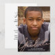 Diese einfache, moderne Abschluss-Karte verfügt über ein Imitat Rose Gold-Folie Skript-Overlay und komplettes Foto. Auf der Vorderseite wird "Graduate" unten in handgeschriebenem Skript über einem großen, vertikalen Foto angezeigt. Fügen Sie den Namen und das Foto Ihres Absolventen, das Jahr des Abschlusses und die Schule hinzu. Auf der Rückseite können Sie Details zur Abschlussfeier hinzufügen.