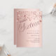 A modern Sweet 16 invitation. Rose gold gradient background and the word Sixteen written with large letters. Decorated with stars. Personalize and add a name and party details.