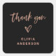 Rose Gold Script und Herz auf Schwarz | Danke Quadratischer Aufkleber