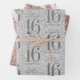 Ein Set von süßen 16 Geburtstagsparty verpackt Papierblätter mit trendigen und modernen Rose goldfarben und silber Glitzer und ein Blatt personalisiert mit dem Namen der Geburtstagsfrau wird sechzehn. Geben Sie den Namen ein, und es wird das sich wiederholende Muster von großem Gold 16 und "Happy Birthday" Text.