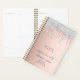Eine Rose goldener Hintergrund mit eleganter Rose Gold und Imitate silberne Tropfen, Farbe Tropfen aussehen. Vorlage für ein Jahr. Personalisieren und fügen Sie einen Titel, Geschäftsnamen, Kontaktinformationen auf der Vorderseite. Der Buchtitel ist grau geschrieben mit einem großen, modernen, handgeschriebenen Stilskript mit Swashes. Um die Swashes behalten, löschen Sie nur den Beispielnamen, verlass die Leerzeichen oder Emoji's vor und nach dem Namen. Ein Terminplaner für 20xx (oder jedes Jahr) für Makeup-Künstler, Haar- und Schönheitssalons.