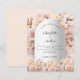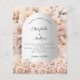 Eine moderne, stilvolle und romantische Einladung für eine Hochzeit. Ein silber aussehender Bogenrahmen aus Imitaten, der mit sanften, in Rose goldfarbenen Blume geschmückt ist. Personalisieren und fügen Sie Ihre Namen und die Details. 1 Blatt = 1 Einladung mit Druckkante bis Kante.