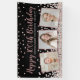 Elegantes, individuelles Bannerdesign mit Rose Gold und Silber Konfetti auf schwarzem Hintergrund, moderne Schriftzeichen mit den Worten "Happy 100 th Birthday" (in Rose Gold), Ihrem Namen und Geburtsdatum (in Silber) und drei Ihrer Lieblingsstifte Fotos gerahmt in metallischer Rose Goldfolie.