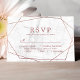 Rose Gold einfache geometrische Hochzeit RSVP. Schöne elegante Marmor Hochzeit RSVP Cards mit einer Rose goldenen geometrischen Rahmen. Dieses maßgeschneiderte, moderne Hochzeitsdesign kann leicht mit Ihren Hochzeitsdetails personalisiert werden.