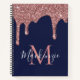 Rose Gold Sparkle Glitzer Tropfen Navy Blue Monogr Notizbuch
