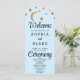 Das hellblaue Hochzeitsprogramm, ein himmlisches Meisterwerk, das Ihren besonderen Tag mit himmlischem Charme bereichern soll. Dieses Programm ist für alle gedacht, die von himmlischen, sternenförmigen oder mystischen Hochzeitsthemen träumen. Es schafft eine faszinierende Atmosphäre, die über das Alltägliche hinausgeht. Auf der Vorderseite dieses bezaubernden Programms werden die Namen der Paare, das Hochzeitstag, die Lage und die Zeremonie Details elegant vor einem ruhigen, hellblauen Hintergrund präsentiert. Ein himmlisches Spektakel schmückt die obere Grenze, mit einer Reihe von Rose, die mit goldenen Sternen und einem anmutigen Halbmond überzogen sind. Dieses himmlische Dekor gibt den Ton für eine zauberhafte Feier unter den Sternen vor und ist somit die ideale Wahl für Nachthochzeiten oder für himmlische Feste. Die vorwiegend einfache Blockschrift sorgt für Klarheit und Raffinesse, sodass die Himmelselemente in den Mittelpunkt gerückt werden können. Die Wörter "Welcome", "Ceremony" und "Wedding Party" werden zart in einem hübschen Schriftzeichen gerendert und verleihen dem Gesamtdesign einen Hauch von Laune und Eleganz. Diese Skriptelemente verleihen dem Programm ein Gefühl der Verzauberung und ergänzen perfekt das Himmelsthema. Drehend auf den Rücken setzt sich die himmlische Magie fort, indem die Rose goldene Sterne hängt und der Halbmond an der oberen Grenze aufsteigt. Im Folgenden werden die Details der Hochzeitsfeier sorgfältig aufgelistet und von vorne bis hinten ein einheitliches und bezauberndes Design beibehalten. Unser Light Blue Wedding Programm, mit einer obersten Grenze von goldenen Sternen und einem Halbmond geschmückt, lädt Sie ein, eine himmlische Reise an Ihrem Hochzeitstag zu unternehmen. Dieses Programm ist perfekt für alle, die himmlische, sternenförmige oder mystische Hochzeiten haben, und verspricht, Ihre Feier in eine Nacht der Magie, der Liebe und des himmlischen Wunders zu verwandeln.