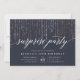 Unsere festliche Überraschung-Party Einladung in schicken Rosa und Marineblau zeigt vertikale Fäden glänzender Imitate Rose goldene Folienstrahlen über die Oberseite, und "Überraschung Party" in chic Kalligraphie Schrift Typografie. Persönlich gestalten Sie Ihre Überraschungsfeierlichkeiten in Weiß. Sie können für jeden Anlass, wie Geburtstagsfeiern oder Jubiläumsfeiern, genutzt werden.