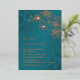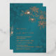 This elegant wedding invitation features rose gold line art floral cherry blossoms on a shimmering teal / turquoise background. Your photo on the backside.