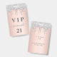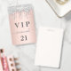 Ein modernes, stilvolles und glamouröses Abzeichen für eine 21. Geburtstagsfeier (oder jedes Alter). Eine Rose goldener Hintergrund mit einer eleganten Rose Gold und Silber-Tropfen, Farbe Tropfen Look. Der Name wird mit einem modernen, dunkelgrauen Handschrift geschrieben, das mit einem Schrägstrich versehen ist. Mit dem Text: VIP Nummer 21 ist in goldener Farbe geschrieben. Um die Swashes behalten, löschen Sie nur den Beispielnamen, verlass die Leerzeichen oder Emoji's vor und nach dem Namen.