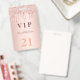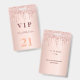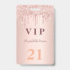 Ein modernes, stilvolles und glamouröses Abzeichen für eine 21. Geburtstagsfeier (oder jedes Alter). Eine Rose goldener Hintergrund mit Tropfen, Farbe Tropfen aussehen. Der Name ist mit einer modernen dunklen Rose goldfarbenen handgeschriebenen Schreibschrift geschrieben. Mit dem Text: VIP Nummer 21 ist in goldener Farbe geschrieben.