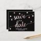 Rose Gold und Schwarz | Glam Confetti Save the Dat Ankündigungspostkarte