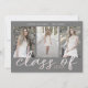 Drei Foto Collage mit benutzerdefinierten whimsical Skript "Klasse von" in Rose Imitat Folie mit Jahr in der gleichen Farbe. Alle Informationen sind in serifenlosen serifenlosen eleganten Schriftart auf der Oberseite der Karte. Die Rückseite ist ein rosa Pink-Pollka-Punkt-Glitzer-Muster. Machen Sie schöne, maßgeschneiderte Ankündigungen mit einfacher Anpassung.