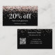 Schwarzer Hintergrund, weißer Text. Die Rose ist mit Blütengold dekoriert. Auf der Vorderseite: Fügen Sie Ihren Rabatt hinzu. Zurück: Personalisieren Sie Ihren Firmennamen, Ihre Telefonnummer, Ihre E-Mail, Ihre Website-Adresse, Ihren qr-Code auf Ihrer Website oder Ihrem Social-Media-Konto.