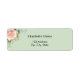 Ein schlauer grüner Hintergrund. Die Einrichtung besteht aus einer Rose mit Gold und Rosa Rosa, Blumen- und Eukalyptusgrün und Imitaten mit goldenem Blattwerk. Personalisieren Sie Ihren Namen und Ihre Adresse und fügen Sie diese hinzu. Schwarze Buchstaben.