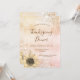 Ein goldener Fall Erntedank Dinner Einladung. Eine Rose Gold und rot rosa Imitate metallisch aussehend mit Imitaten Gold und silberne Glitzer Staub und eine rustikale Sonnenblume. Personalisieren Sie Ihre Party-Daten und fügen Sie sie hinzu.