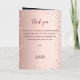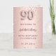 Ein Imitat Rose Gold Farbverlauf Hintergrund mit rosa Diamanten. Der Name ist mit einer modernen dunklen Rose goldfarbenen Handschrift geschrieben, die als Stilschrift dient. Nummer 90 wird mit einem Schriftart im Ballonstil geschrieben, Skript. Willkommenstext, Foto, Menü und ein Dankeschön auf der Rückseite. Möglicherweise müssen Sie den Menütext und den Namen auf der Rückseite anpassen, abhängig davon, wie viel Text Sie benötigen. Sie können auch das Foto auf der Innenseite entfernen und ein Programm hinzufügen, wenn Sie möchten.
