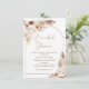 Rose Gold Arch Terracotta Boho Blumendusche Einladung Imitate Rose Gold moderne Kalligrafie Braudusche Einladung in einem böhmischen Stil mit zwei schönen natürlichen und Terrakotta florale Arrangements mit Pampas Gras und ein Terrakotta Bogen.
