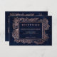 Blumengoldblauer Rose Marineblau Hochzeitsdetails Empfang mit Rose Goldrahmen und handgezeichnete elegante Blumenmuster auf handbemalten marineblau Aquarell. Ideal für elegante, schicke Hochzeiten.