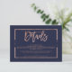 Rose Gold Typografie auf individualisierbaren marineblauen Rose goldene Streifen geometrische Rahmen Halbrahmen schicke Hochzeitsrichtungen und Details , ideal für elegante, Strand Hochzeit,