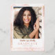 Trendy Rose Gold Marble Foil Abschluss Ankündigung ist ideal für die High School oder Uni Absolventen, die auf der Suche nach einer eleganten, aber trendigen und einfachen Karte. Bietet Platz für 2 Fotos, eines auf der Vorderseite und eines auf der Rückseite. Personalisieren Sie den Text, um zu lesen, was Sie wollen. Beispiel mit Rose Goldfolie gezeigt. Wählen Sie Silber oder Gold, um Ihre Metalle zu mischen!
