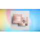 Eine trendige Rose mit goldenem Hintergrund. Mit Konfetti dekoriert. Personalisieren und fügen Sie Ihren Namen, Titel, Profil Foto, Telefonnummer, E-Mail, Website-Adresse, qr-Code zu Ihrer Website oder Social-Media-Konto.