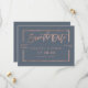 Rose Gold-Typografie auf individuell anpassbaren, staubblauen Rose Goldrahmen-Farbblock, und Imitate Rose goldene geometrische Streifen chic Save the Date Hochzeit , ideal für elegante, stilvolle Hochzeit,