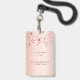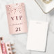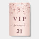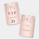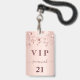 Ein modernes, stilvolles und glamouröses Abzeichen für eine 21. Geburtstagsfeier (oder jedes Alter). Ein Imitat Rose gold metallische Hintergrund mit Rose Gold tropfende Sterne. Der Name ist mit einer modernen dunklen Rose goldfarbenen handgeschriebenen Stil-Skript mit Swashes geschrieben. Mit dem Text: VIP Nummer 21 ist in goldener Farbe geschrieben. Um die Swashes behalten, löschen Sie nur den Beispielnamen, verlass die Leerzeichen oder Emoji's vor und nach dem Namen.
