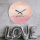 Rose Goldrot Rosa Glitzer Staubname-Skript Große Wanduhr