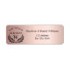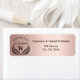 Eine Hochzeit speichern Sie das Datum, Rücksendeadresse Labe. Eine Rose Gold Imitate metallisch aussehend Hintergrund. Dekoriert mit einem Lorbeerkranz. Personalisieren und fügen Sie Ihre Hochzeit Datum, Namen, Adresse und Familie Monogramm erste.