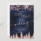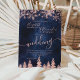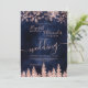 Zeit, um Ihr winterliches Hochzeitsthema mit dieser Rose Gold Glitzer Schneeflocken Glitzern und Rose Gold Glitzer Pine Wald auf einem eleganten marineblauen Aquarell mit einer modernen coolen Skript Schriftart Typografie feiern.