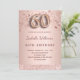 Eine moderne, stilvolle und glamouröse Einladung zu einer 60. Geburtstagsfeier. Eine Rose goldener Hintergrund mit Rose Gold und rosa Sterne. Der Name ist mit einer modernen dunklen Rose goldfarbenen handgeschriebenen Schreibschrift geschrieben. Personalisieren Sie Ihre Party-Daten und fügen Sie sie hinzu. Nummer 60 wird mit einem Schriftart im Ballonstil geschrieben, Skript.