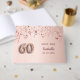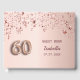 Ein Gästebuch für eine mädchenhafte und glamouröse 60. Geburtstagsfeier. Ein Imitat Rose goldener Hintergrund mit Rose Gold, rosa tropfende Sterne. Personalisieren und fügen Sie einen Namen und ein Datum hinzu. Der Name ist in dunklem Rose Gold mit einem modernen handgeschriebenen Stil geschrieben. Nummer 60 wird mit einem Schriftart im Ballonstil geschrieben.