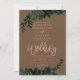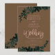 Rose Goldtypografie Blumenbraun Hochzeitseinladung mit handgemalten grünen Aquarellblättern. Der braune Hintergrund ist vollständig anpassbar