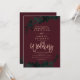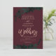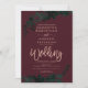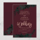 Rose Goldtypografie Blumenburgund Hochzeitseinladung mit handgemalten grünen Aquarellblättern. Der rot-bordeauxfarbene Marsala-Hintergrund ist vollständig anpassbar