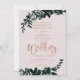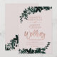 Rose Gold Typografie Floral Pastellfarben weiche Pfirsicheier Hochzeitseinladung mit handgemalten grünen Aquarellblättern. Der pastellfarbene, weiche pfirsichfarbene Hintergrund ist vollständig anpassbar
