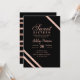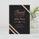 Eine moderne, schicke und elegante Rose Gold Typografie 16 . Geburtstag Party Einladung mit Rose goldene geometrische Streifen auf elegante schwarz