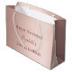 Eine Geschenktasche für einen gmädchenhaften und glamourösen 21. Geburtstag (oder jedes Alter). Eine Rose Gold, rosa Imitate metallisch aussehend Hintergrund. Der Text: Der Name ist in dunklem Gold der Rose mit einem modernen handgeschriebenen Schriftsatz geschrieben. Mit dem Text: Happy Birthday! Personalisieren und fügen Sie einen Namen und Alter 21.