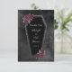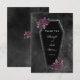Dunkel und schön, dieses coffin Hochzeit danken Ihnen Design ist perfekt für eine gotische oder Halloween Hochzeit. Der Saft hat grauen Glitzer rund um die Kanten und lila Rose mit goldgrünen und grauen Blätter. Hintergrund ist eine launische schwarze Aquarellfarbe. Sehen Sie die Koordination der Artikel in unserem Shop, Verzauberte Finch.