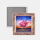 Rosa Rose in Ölmalerei Himmel im eleganten Vintagen Rahmen.Ein wertvolles Geschenk für Magnete Sammler