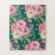 Dunkel aquamarin ist die perfekte Glam-Kulisse für diese feminine Rose Blumendruck in Rosa, Pfirsich und Creme. Dieses Puzzle zu bauen wäre wie im Garten zu arbeiten.