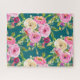 Dunkel aquamarin ist die perfekte Glam-Kulisse für diese feminine Rose Blumendruck in Rosa, Pfirsich und Creme. Dieses Puzzle zu bauen wäre wie im Garten zu arbeiten.