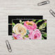 Schwarz ist die dramatische Kulisse für diese feminine Rose Blumendruck in Rosa, Pfirsich und Creme. Die Kartenrückseite ist schwarz mit einem Streifen der Blumenmuster-Rose, der mit dem Tool "Anpassen" entfernt werden kann. Sie können auch den Text, den Schriftart, die Farbe des Schriftartes ändern, um Ihre Bedürfnisse zu Anzug.