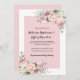 Rosa und cremefarbene Rose mit Rosenbüffeln und passenden Grünpflanzen für Hochzeiten. Ihre Daten sind auf einem hellrosa Rahmen und die Rückseite der Karte ist dieselbe blassrosa.