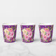 Lila Glitzer ist der perfekte funkelnd Hintergrund für diese feminine Rose, die in Rosa-, Pfirsich- und Cremetönen geblümt ist. Diese Papiertassen wären die perfekte Ergänzung zu einer Geburtstagsfeier, einem Brautparty oder einer Hochzeit im Freien.