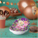 Lila Glitzer ist der perfekte funkelnd Hintergrund für diese feminine Rose, die in Rosa-, Pfirsich- und Cremetönen geblümt ist. Diese auffälligen Schüsseln werden sicherlich jede Feier aufheitern.