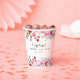 Diese eleganten Brautparty-Papiertassen sind mit einem schönen Aquarellrahmen aus Rot und Rosa versehen. Der Text ist grau. (Dies ist Teil der Rosensammlung von Rot und Rosa.)